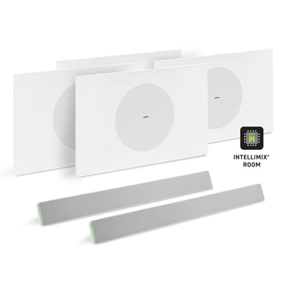The Shure Microflex Ecosystem 712L AV Conferencing Bundle includes two MXA710 Linear Array Microphones, an IMX-RM8-SUB5, and four MXN5W-C + Tile Bridges.