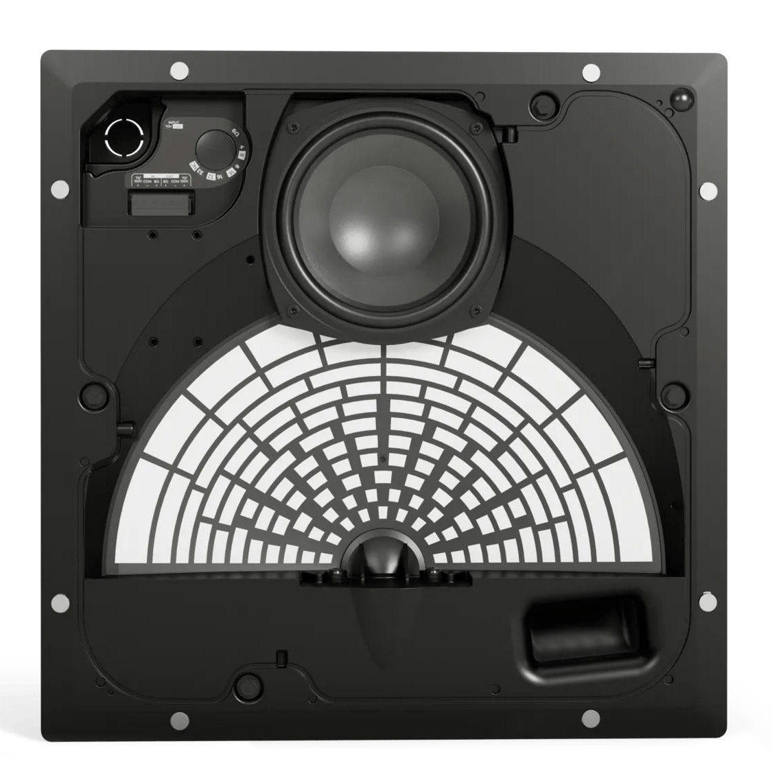 - Product Dimensions (HxWxD)339 mm x 339 mm x 100 mm (13.4 in x 13.4 in x 3.9 in) enclosure / 390 mm x 390 mm x 13 mm (15.4 in x 15.4 in x 0.5 in) grille flange