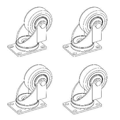 The ACK1 Universal Accessory Caster Kit from JBL offers four casters, each with a load rating of 220 lbs (100 kg), and the wheels are made from black polyurethane.