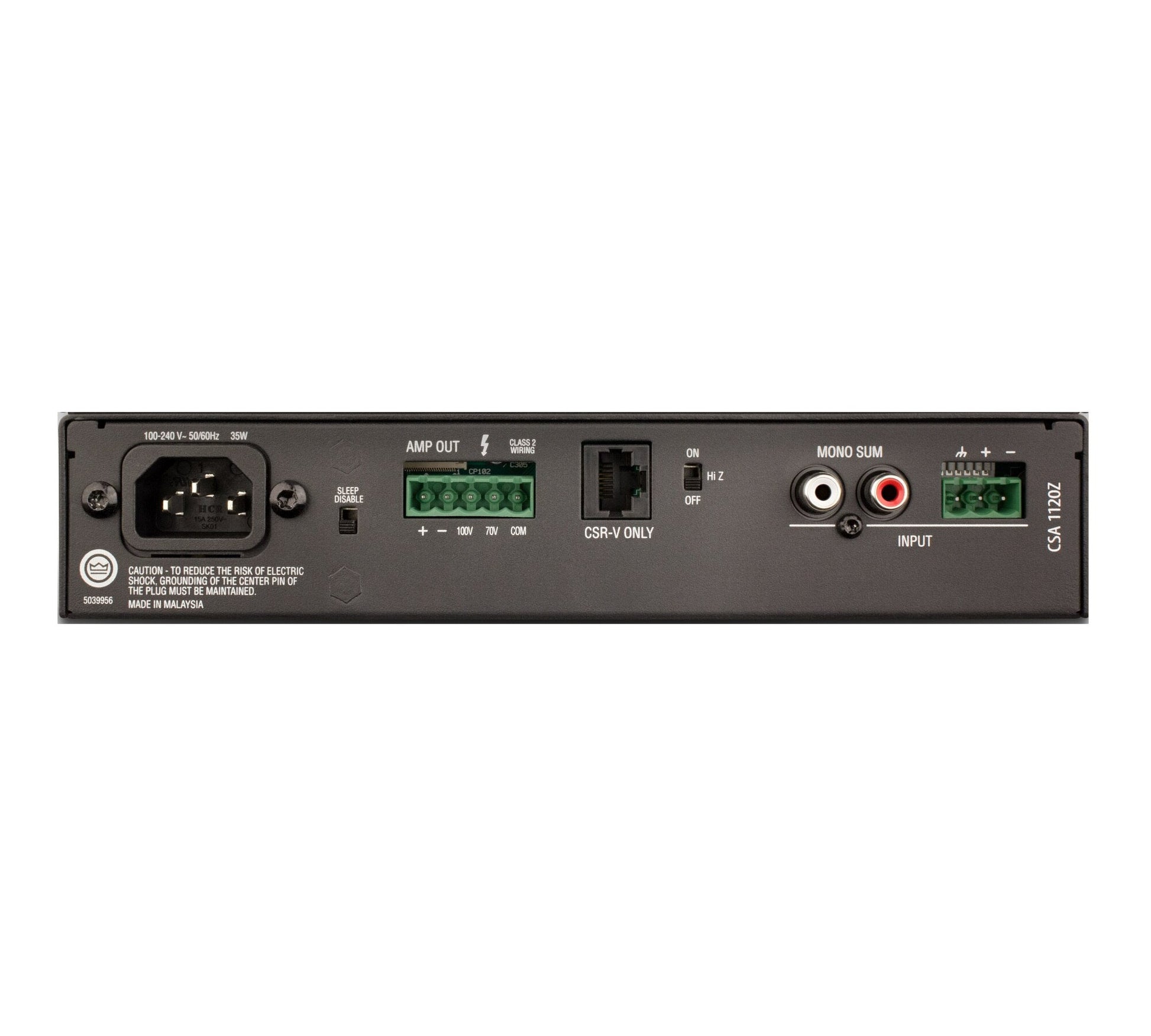 Supporting 70V and 100V installations out of the box, Commercial Series amps include RJ45 connectors for use with JBL CSR-V in-wall volume controls. Its universal power supply allows every Commercial Series amp to accept AC voltages from 100 to 240 VAC, 50/60 Hz.
