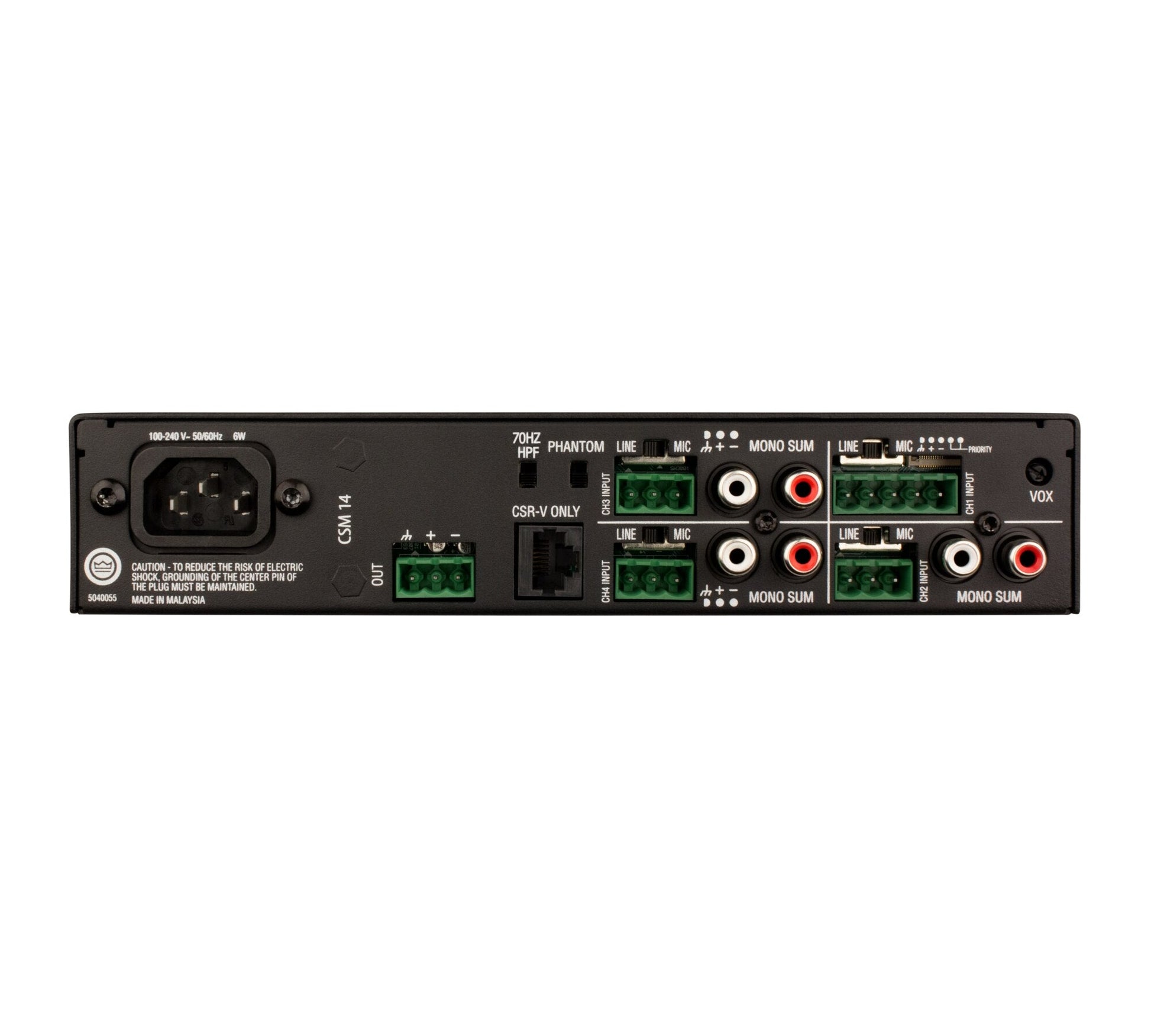Backed by the combined technological prowess of multiple HARMAN brands, the JBL CSM 14 Commercial Mixer delivers unsurpassed quality in commercial sound.