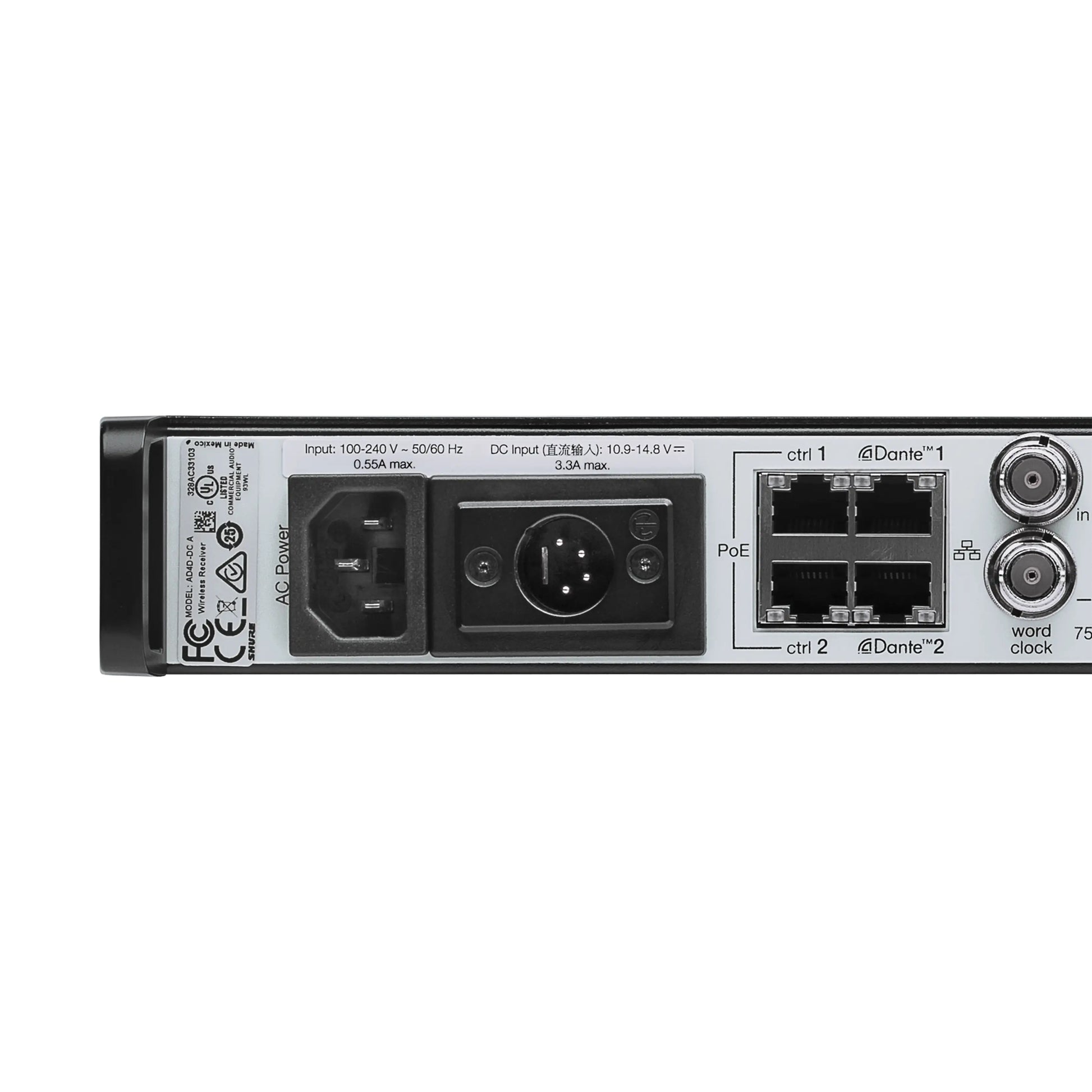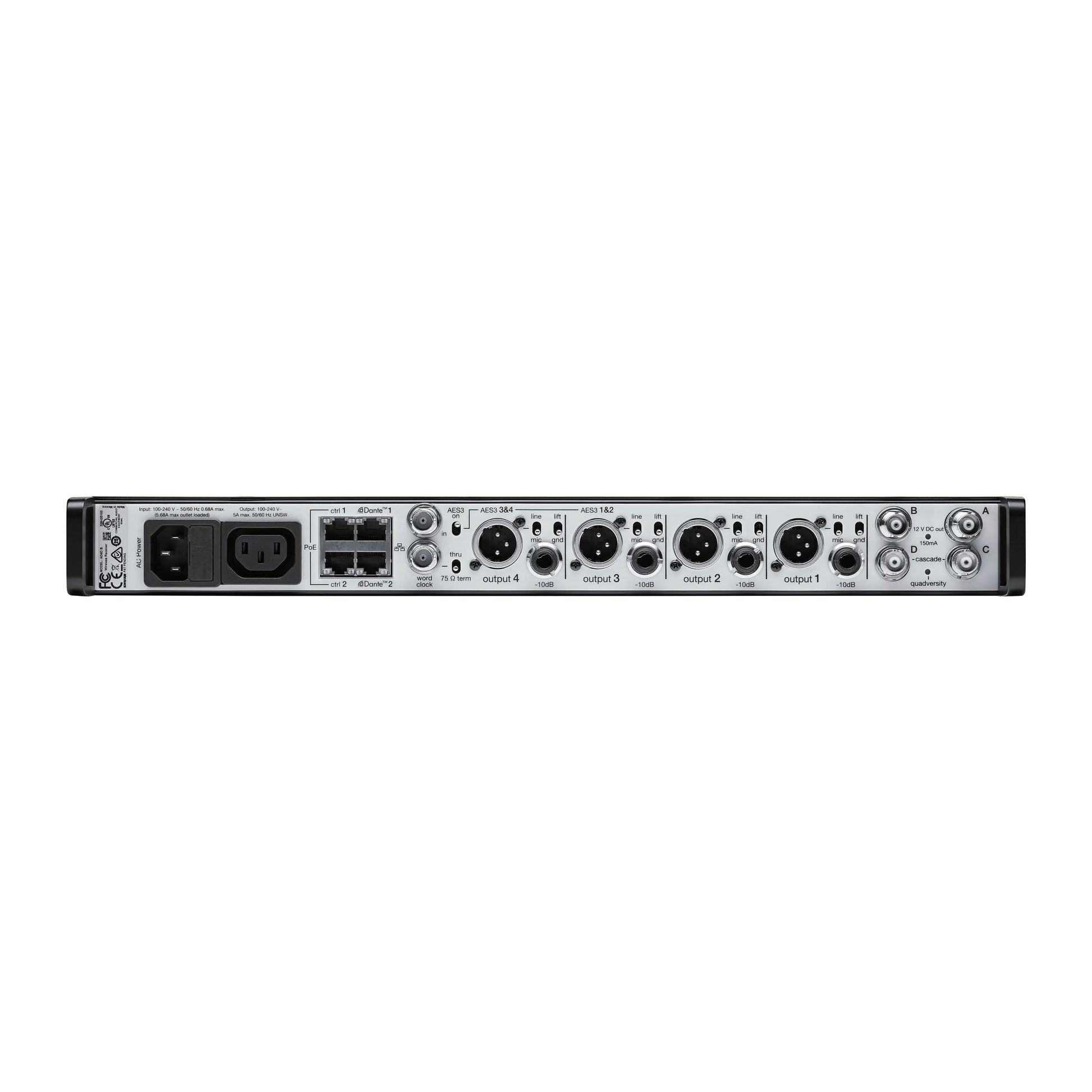 Shure AD4Q 4-Channel Axient Digital Wireless Receiver | Frequency: A (470-636 MHz), Accessories: US Power Supply